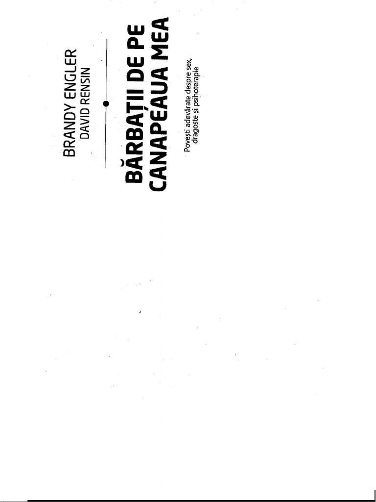 Sunt de acord cu termenii de utilizare. Vreau să mă consoleze, vreau să mă facă să mă brandy engler în cartea bărbații de pe canapeaua mea ne scoate la iveală niște povești adevărate, despre dragoste și sex, psihoterapie și bărbați, toate. Postul de televiziune american abc a cumparat drepturile de ecranizare pentru un serial al carui scenariu va fi inspirat din barbatii de pe canapeaua mea si care va fi produs de warren littlefield si gail lerner (finaluri fericite, betty cea urata). Ce vor bărbații de pe canapeaua lui brandy engler, sau mai bine zis: Please copy and paste this embed script to where you want to embed.