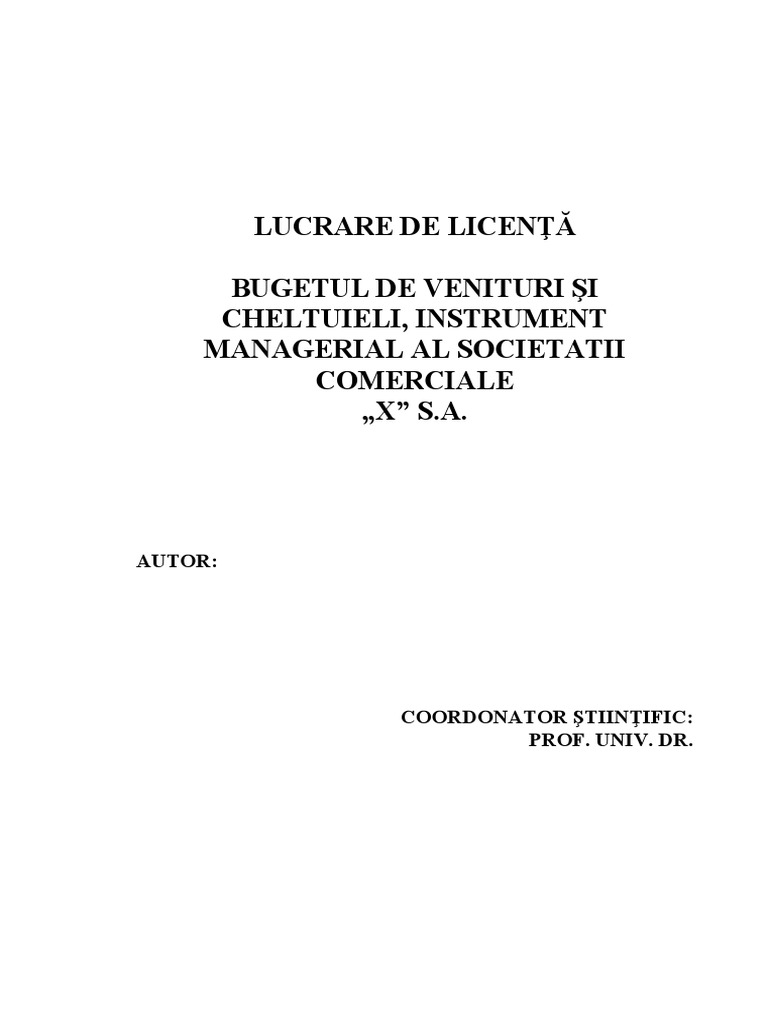 Model Buget De Venituri Si Cheltuieli Societate Comerciala