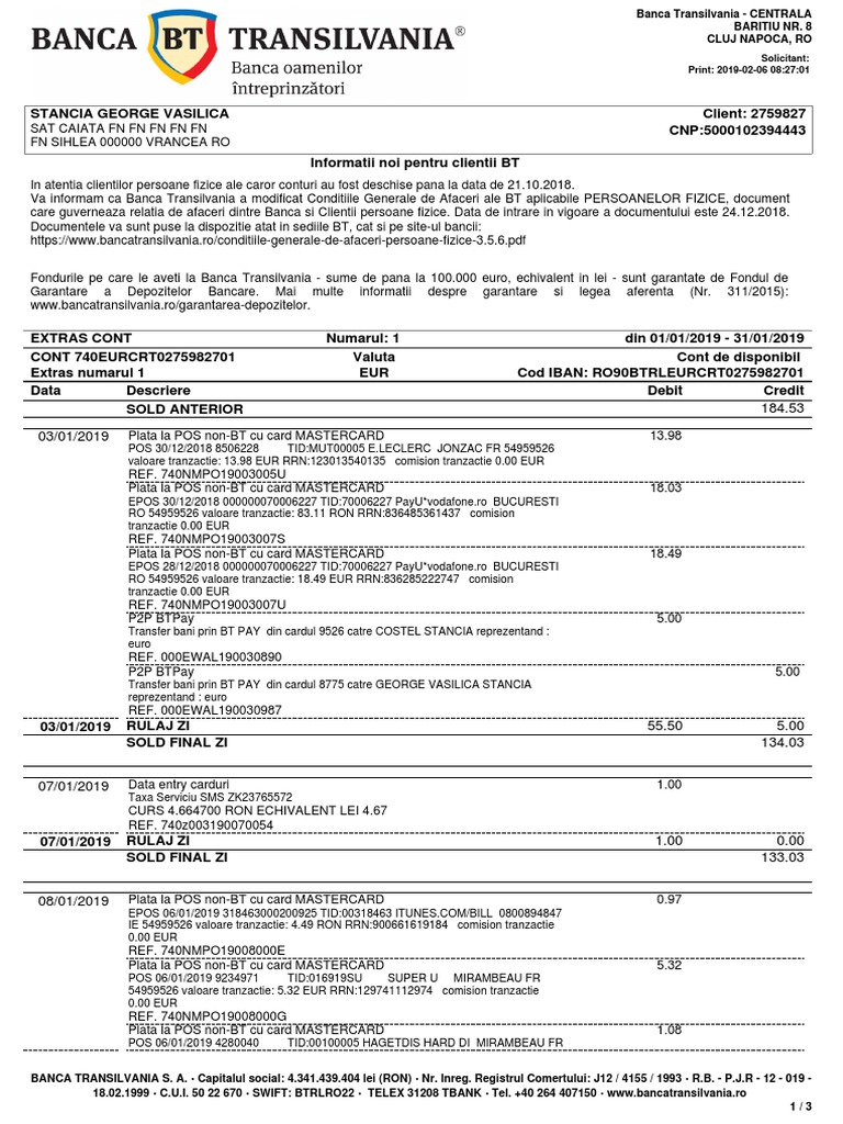 Banca transilvania ia bani din contul clientilor. Contul curent pentru persoane fizice este solutia personalizata prin care ai oricand acces gratuit la banii tai, indiferent de moneda in care a fost deschis contul: Precizez ca am cont in euro la banca transilvania.