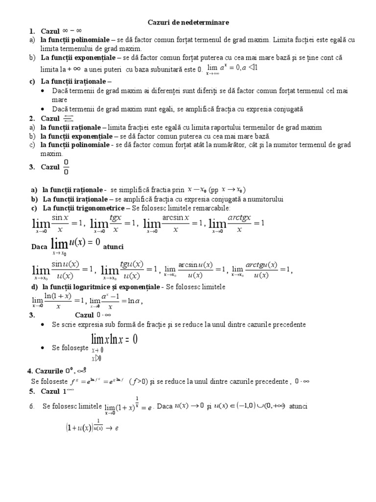 vizitati articolul complet aici : https://www.youtube.com/watch?v=Cdb_HJk6UnE How to compute limits of type infinity minus infinity? The limit is ± ∞ (depending on the sign of the coefficient of highest degree). They are just formal symbols.